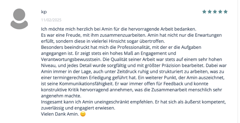 Sparen Sie Zeit, reduzieren Sie Stress und sichern Sie sich eine professionelle Mustervorlage für Ihre wissenschaftliche Arbeit – persönlich erstellt von Amin Rafiki, ohne Outsourcing, ohne Agentur.